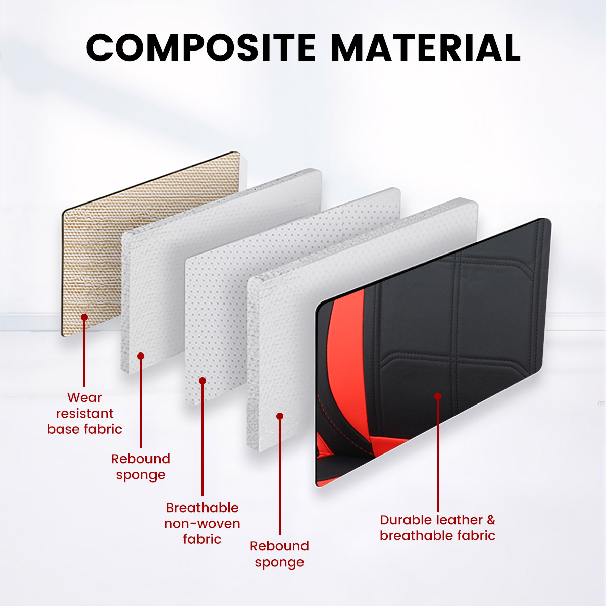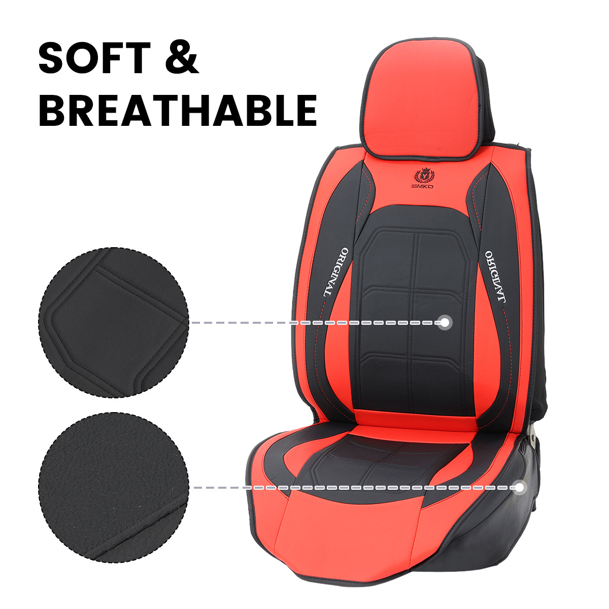 Tämä 5-paikkaisiin ajoneuvoihin sopiva istuinsuojasarja suojaa verhoilua arjen kulumiselta ja roiskeilta. Hengittävä kangas–nahkaseos ja ergonominen tikkaus lisäävät ajomukavuutta, ja liukuestepohja pitää suojat paikoillaan. Helppo asentaa ja puhdistaa.