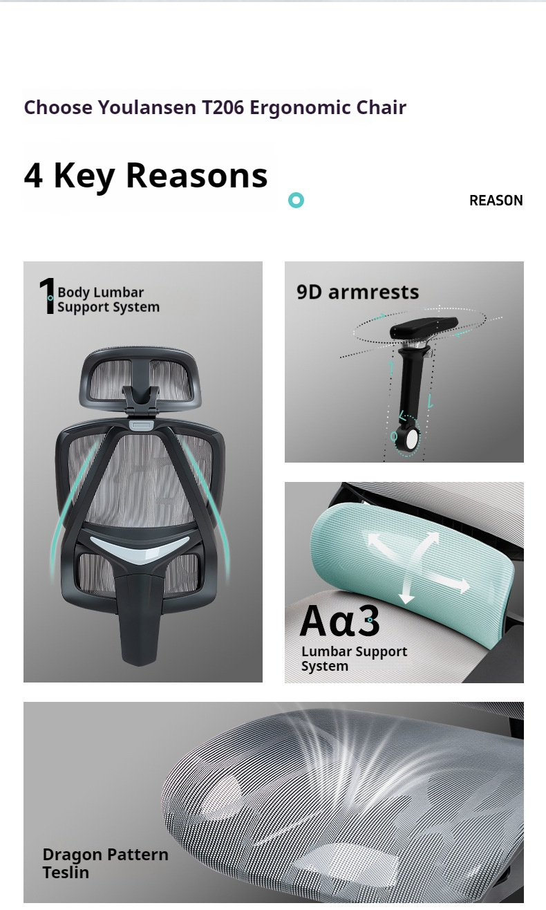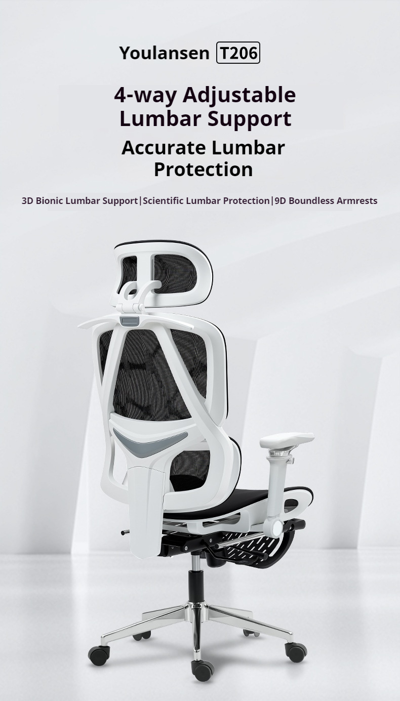 Yoranson T206 ergonominen pelituoli 8D-niskatuki 9D-käsinojat 3D-lannetuki hengittävä verkkoselkänoja säädettävä kallistus