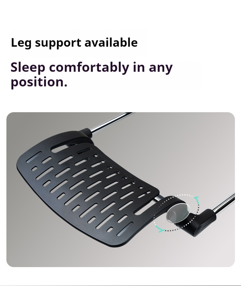 6. Laajennettava jalkatuki: kaksinkertainen tukijärjestelmä mukavaan lepoasentoon.