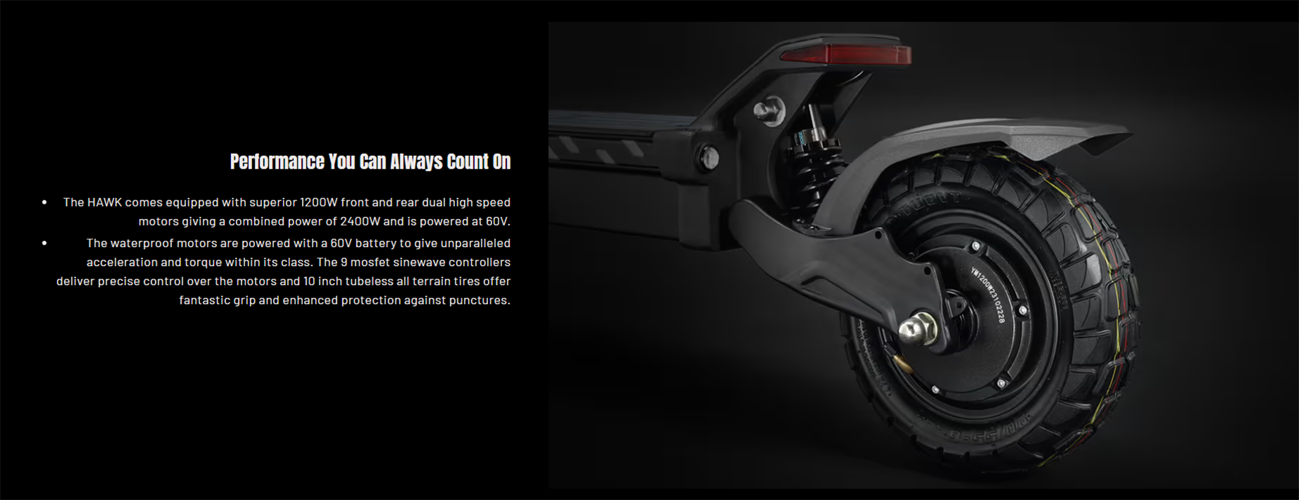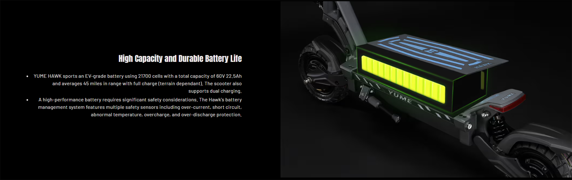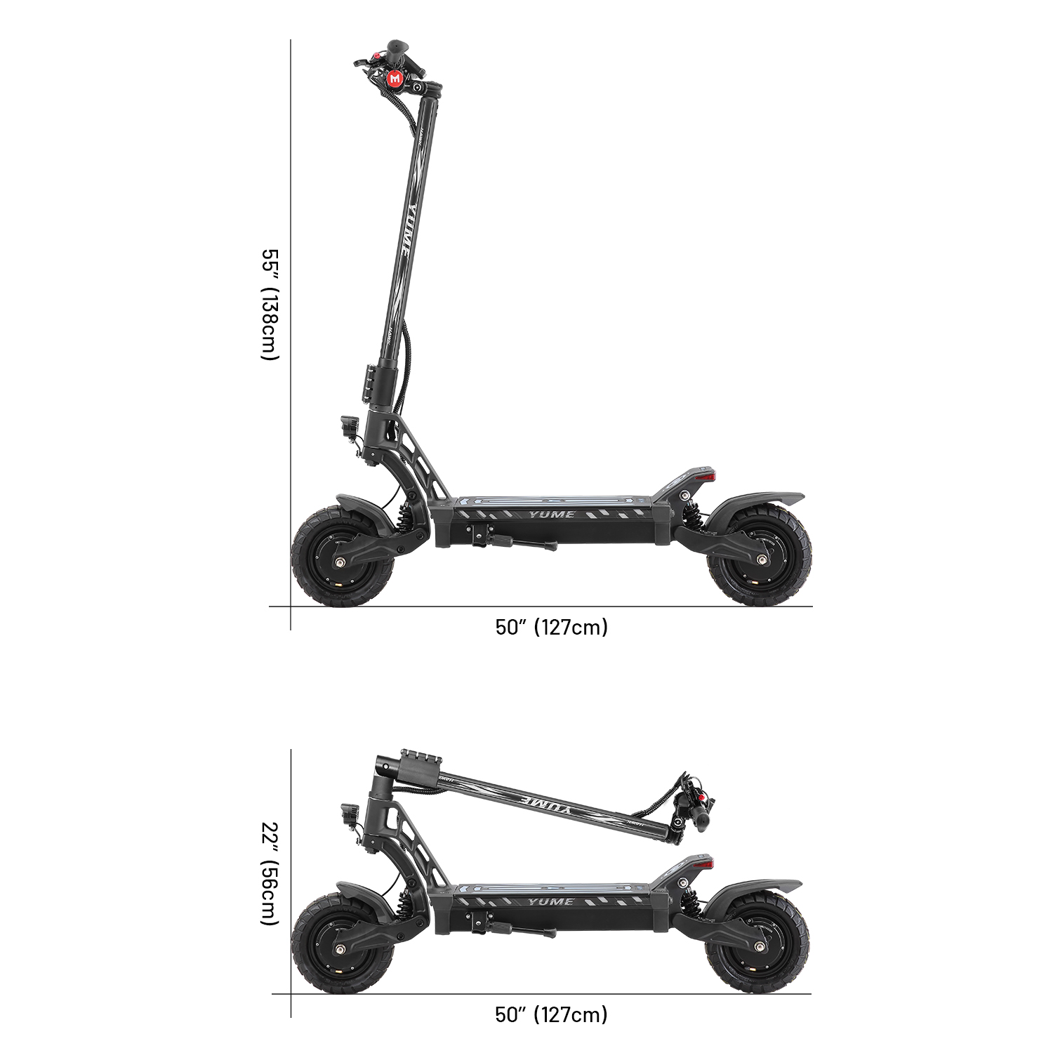 YUME HAWK on tehokas sähköpotkulauta, joka on suunniteltu mukavaan ja vakaaseen ajoon sekä kaupunkikaduille että vaihteleville alustoille. Kaksi 60V 1200W -moottoria, pitkä toimintamatka ja säädettävä jousitus tekevät siitä sopivan sekä päivittäisiin matkoihin että pidempiin ajoihin.