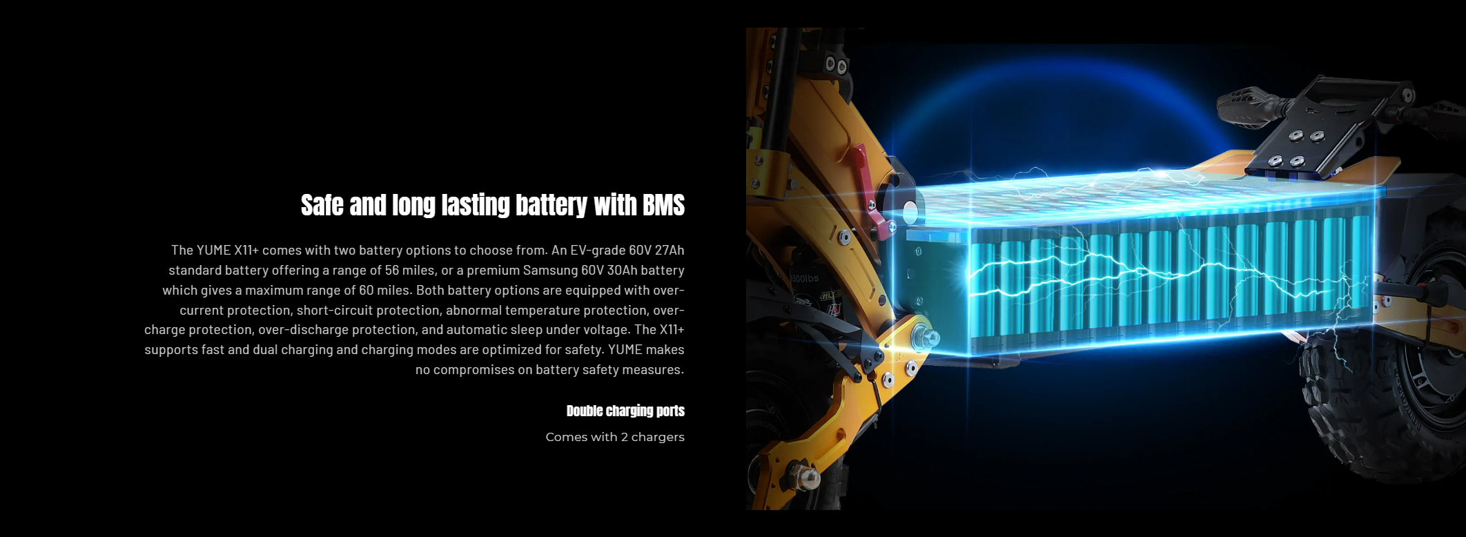 YUME X11+ taittuva sähköpotkulauta 60V 27Ah akku kaksoismoottorit 11 tuuman renkaat 90 km toimintasäde