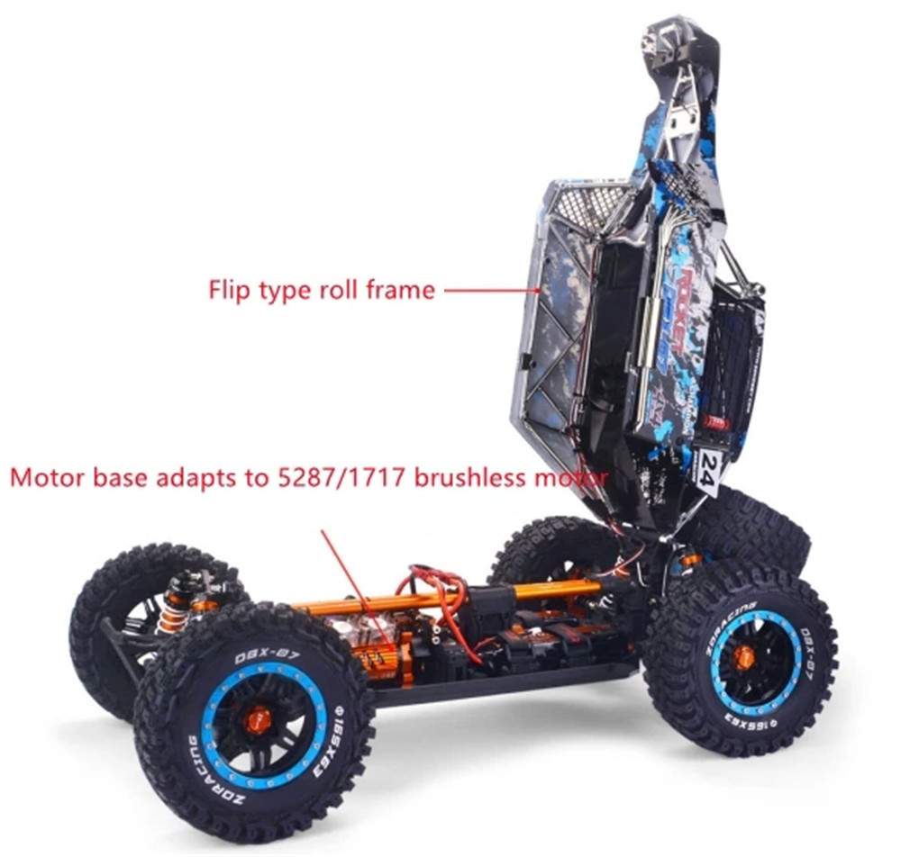 Tuotemerkki: ZD Racing Tuotekoodi: DBX-07 Mittakaava: 1/7 Väri: sininen ja harmaa Suunniteltu nopeus: 80KM/H |