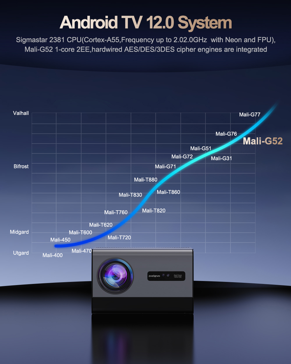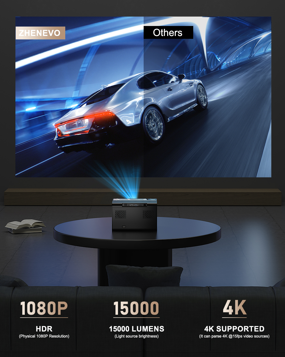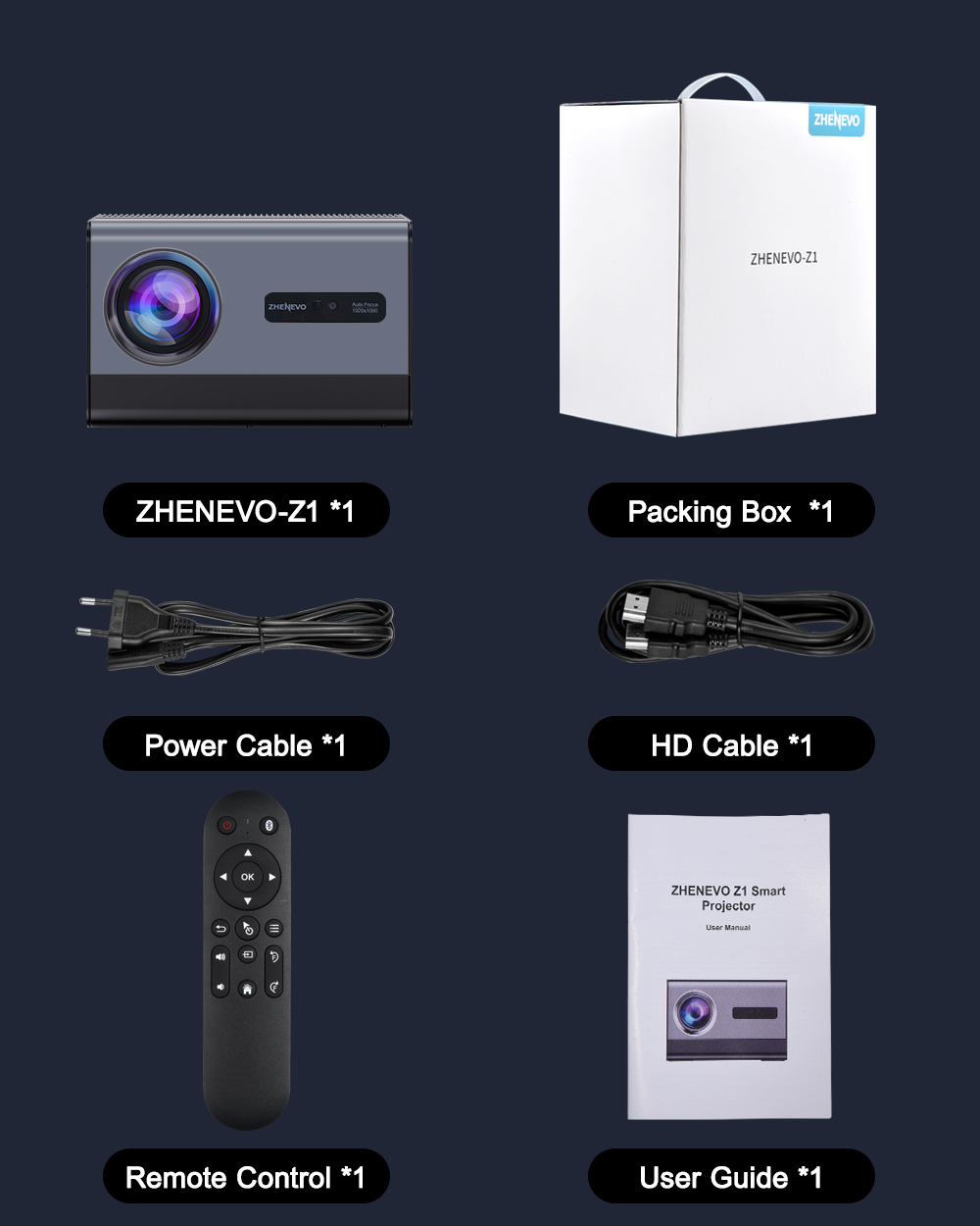 ZHENEVO Z1 on kotikäyttöön sopiva projektori, jossa on Android 12.0 -järjestelmä, 1080P-tarkkuus ja 4K-tuki. 800 ANSI lumenin kirkkaus, automaattitarkennus ja automaattinen trapetsikorjaus helpottavat käyttöönottoa ja parantavat kuvanlaatua. Sisäänrakennetut 8W*2 stereokaiuttimet tarjoavat selkeän äänen, ja WiFi6 mahdollistaa sujuvan langattoman yhteyden.