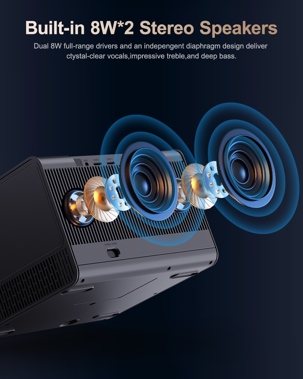 - Sisäänrakennetut 8W*2 stereokaiuttimet tuottavat tasapainoisen äänen.
